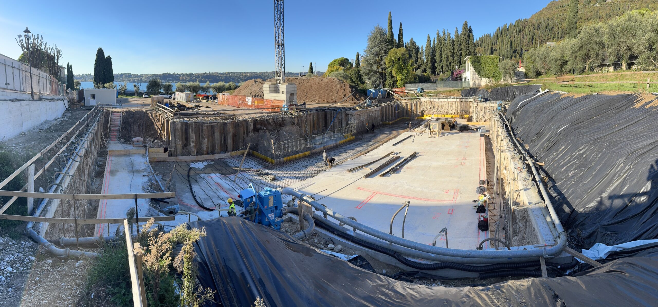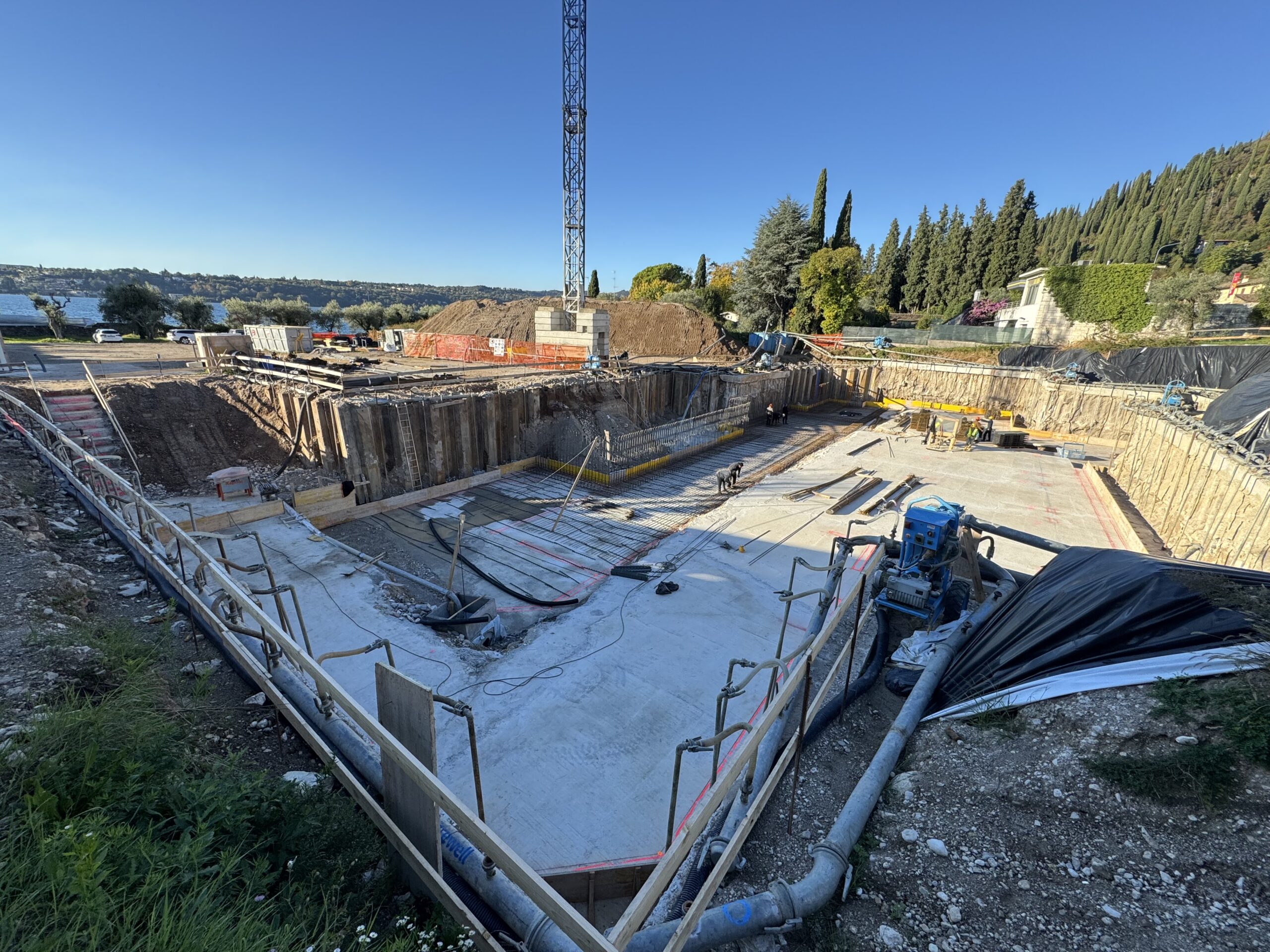Realizzazione di uno scavo per villa privata in prossimità del Lago di Garda, in un contesto caratterizzato da falda superficiale.