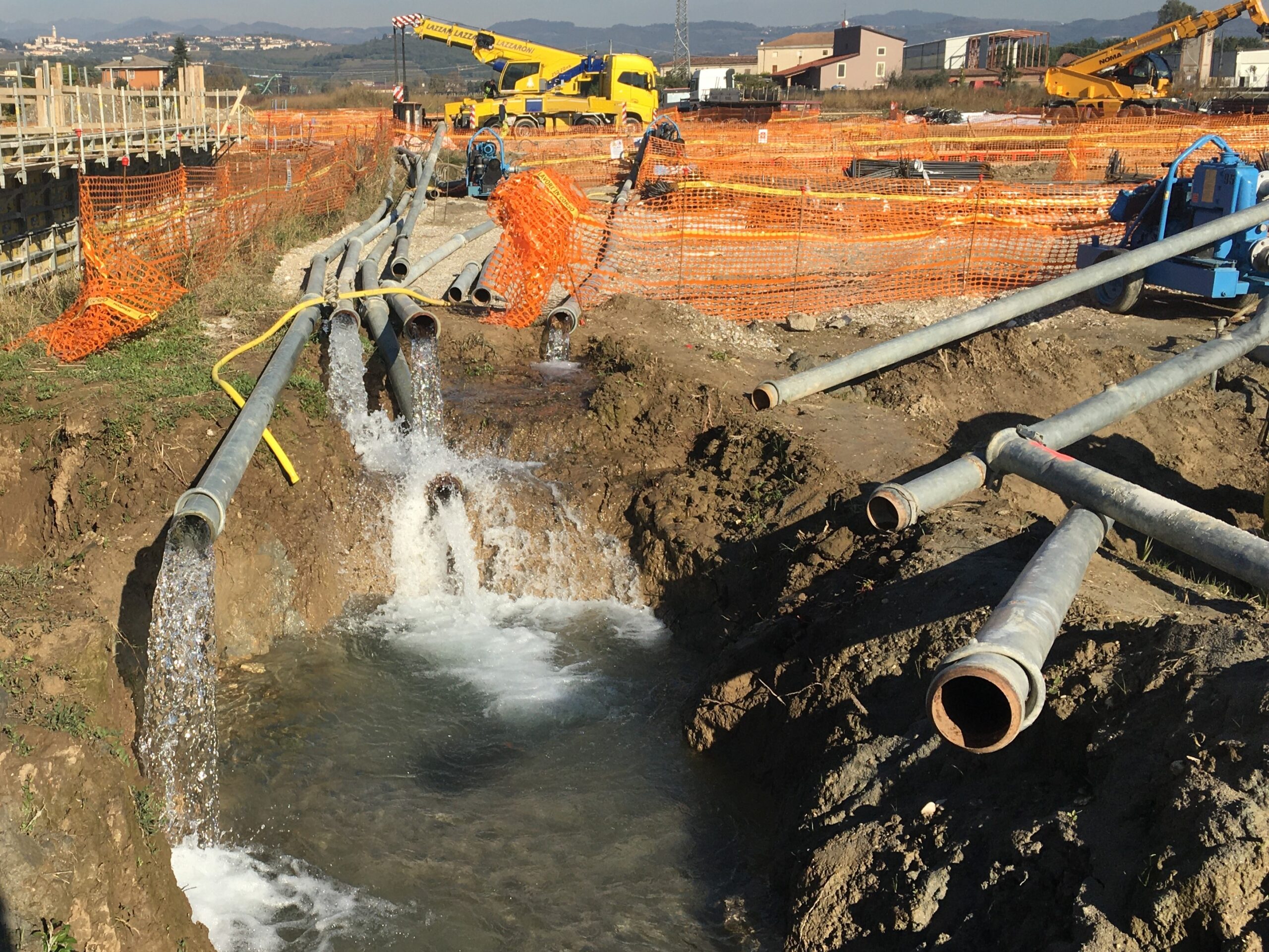 Le diverse soluzioni adottate hanno consentito l’abbassamento temporaneo della falda fino alle quote richieste, garantendo la realizzazione delle opere in condizioni controllate e in sicurezza.